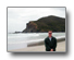 New Zealand, 2 of 10 (North) - We took a day tour of the northernmost part of New Zealand. The first picture is of the 4x4 bus that took us everywhere. We drove up "Ninety Mile Beach" in the morning; the timing of the drive was dictated by the tides. The beach is not actually 90 miles long, but it got it's name from the days of cattle hearding. Farmhands believed that cows traveled 30 miles a day and since it took them three days to travel from one end of the beach to the other, it was 90 miles. New Zealanders decided to keep the name. We drove in the dunes briefly, looking for wild horses. None were to be seen by us that day. We boarded down a gigantic sand dune and lived to tell. With a storm moving in, we stopped at Cape Reinga and walked to the lighthouse. We saw where the Pacific Ocean and Tasman Sea meet. The last three pictures are at a beach where we stopped to eat our picnic lunch. I just had to see if the water was as cold on the New Zealand coast as it is on the Oregon coast and it is. :-) On the way back, we stopped at a restaurant and had some yummy fish and chips.